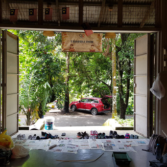 After finishing the wall mural, I looked around all the works carried out by the other groups on the same day; creative learning aid walls, new furniture, new books, freshly painted exterior walls and stairs.
