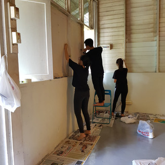 A challenge faced during this was the fact that the walls and windows had a lot of dust and other residue on them, making it difficult to apply the paint thoroughly. We overcame this by cleaning these parts using a scraper, as we went on painting.